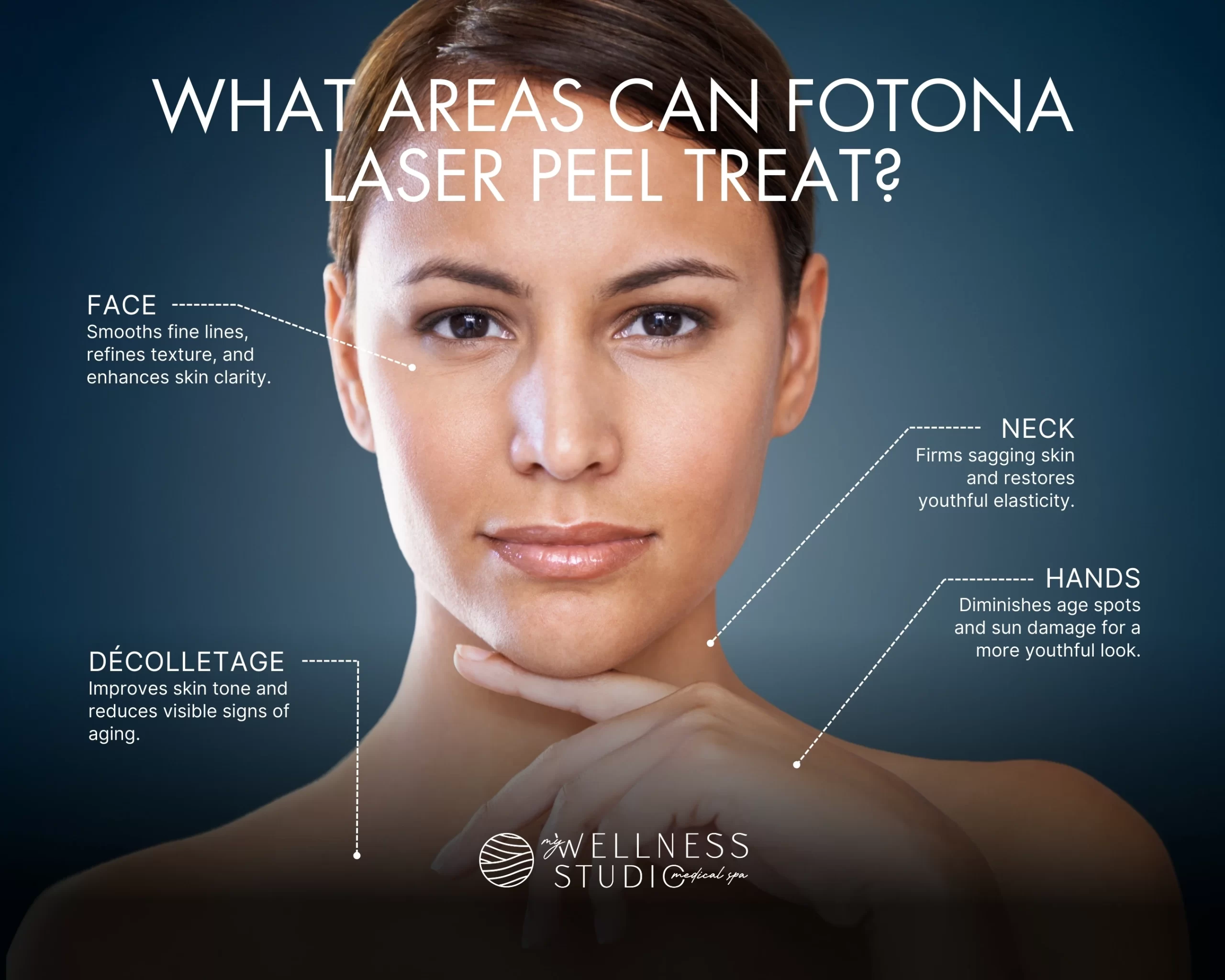 Fotona Laser Peel is a noninvasive skin rejuvenation treatment that uses precise laser energy to stimulate collagen production and resurface the skin. At My Wellness Studio, we offer Fotona Smoothlase and SmoothEye® treatments, designed to reduce fine lines, wrinkles, and sagging skin on the face and around the eyes. By delivering controlled laser pulses deep into the skin, Fotona Laser Peel in Leesburg, FL, promotes natural collagen regeneration, helping you achieve firmer, smoother, and more youthful-looking skin without harsh chemicals or invasive procedures.